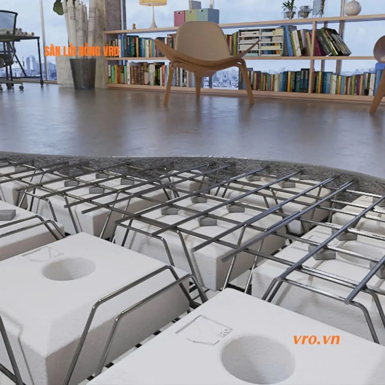 Sàn lõi rỗng VRO là sàn phẳng được tạo rỗng bằng công nghệ xốp của VRO. Công nghệ này do Việt Nam phát triển. Do các chuyên gia xây dựng đầu ngành nghiên cứu và phát triển. Họ là giảng viên đại học, vừa có thực tế, vừa có lý luận