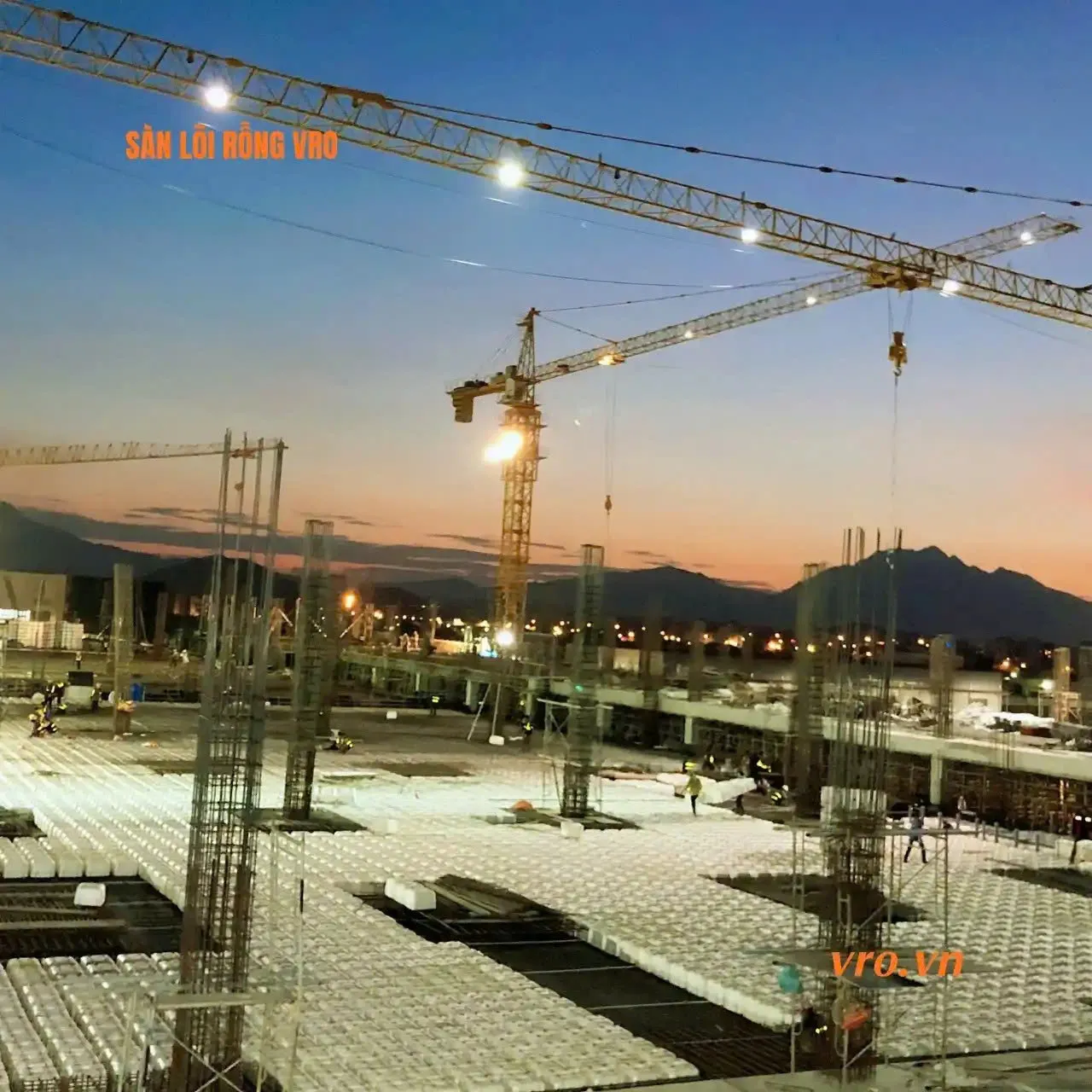 - Sàn xốp VRO có thể kết hợp với sàn nấm lồi hoặc sàn dầm lồi có thể vượt nhịp trên 20m. Thực tế đã VRO triển khai sàn vượt 21,5m.
